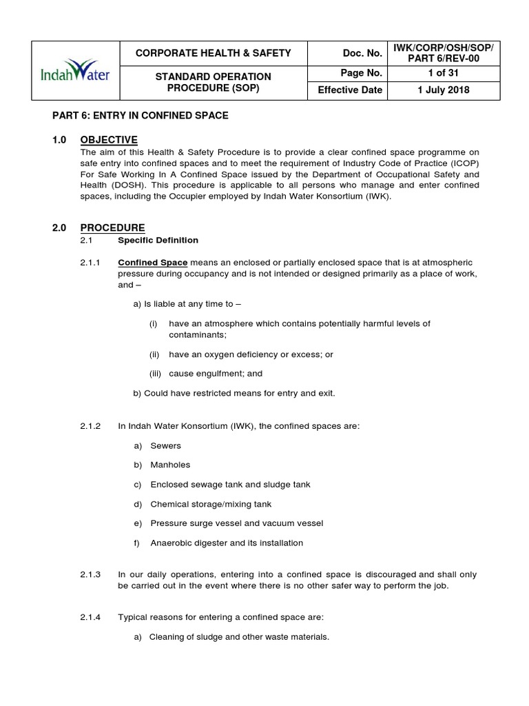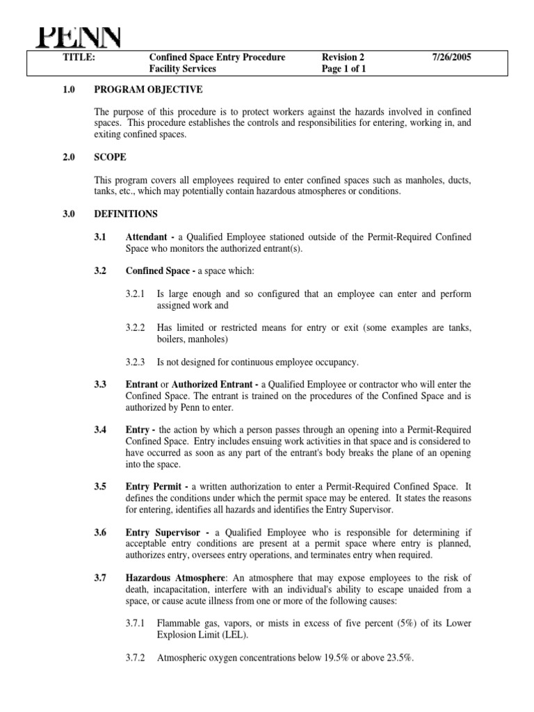 Here are some of the images for Confined Space Procedure Template that we found in our website database.