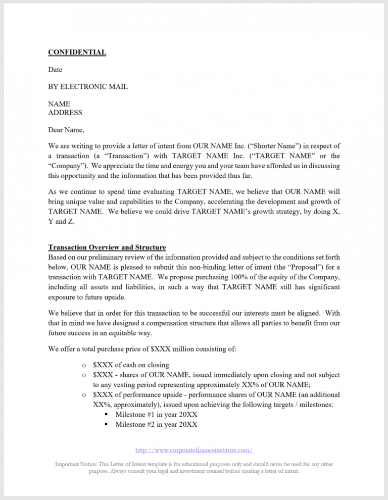 Editable Letter Of Intent Loi Template All The Key Terms Included Angel
