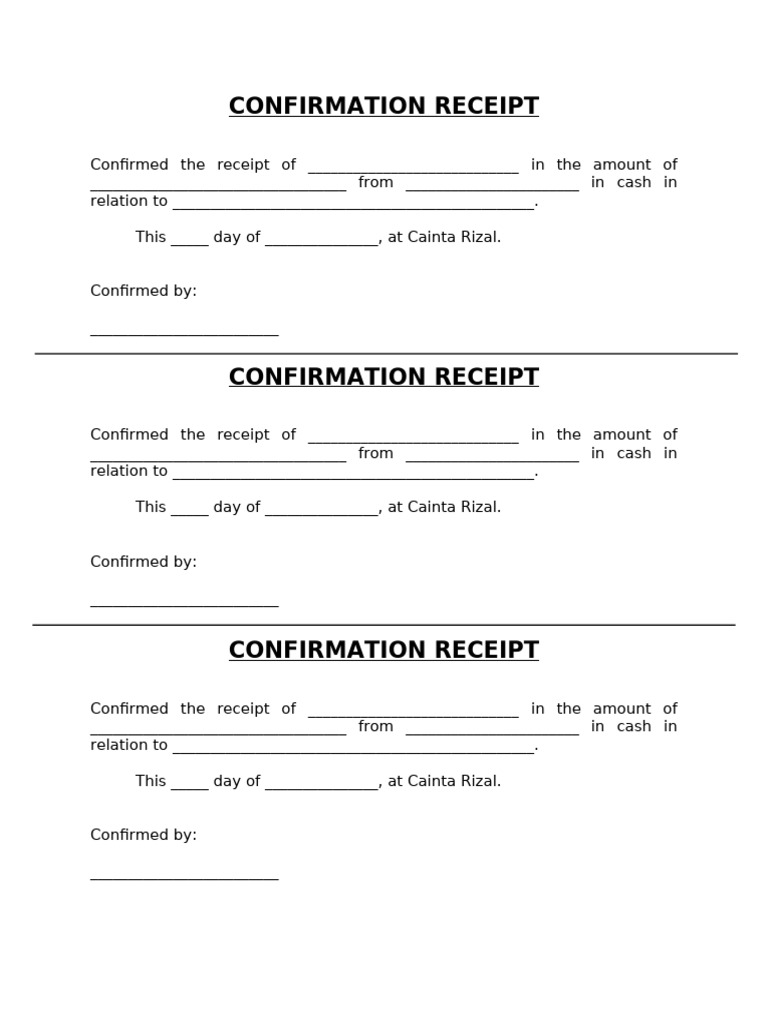 Confirmation Of Receipt Template