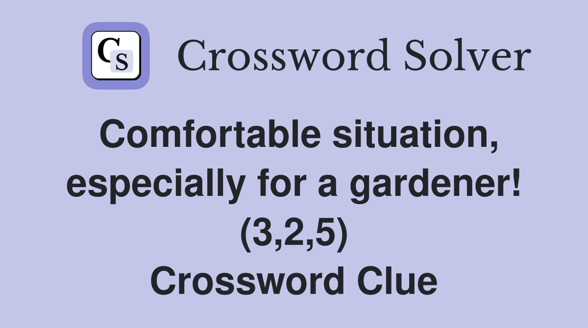 Comfortable situation especially for a gardener (3 2 5) Crossword
