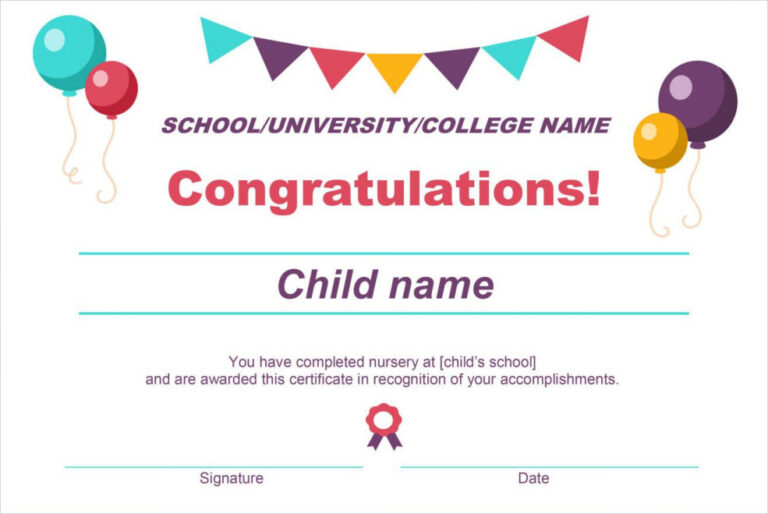 Editable Nursery Graduation Certificate Template in Word Publisher