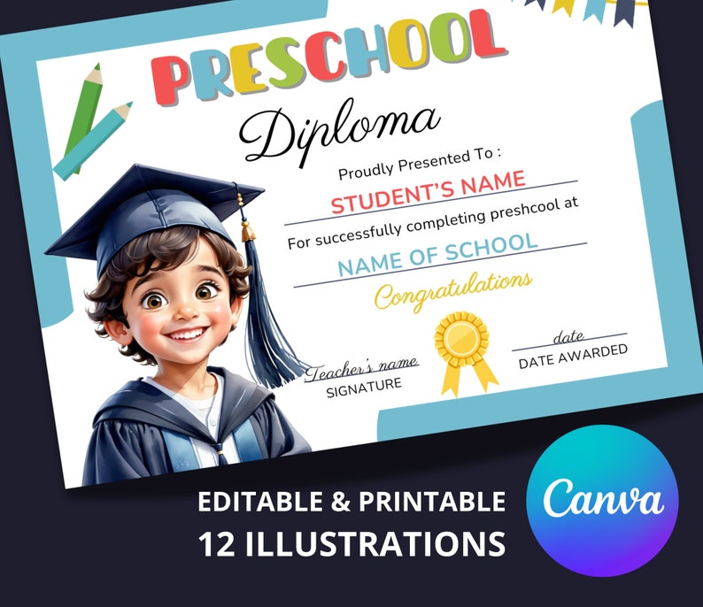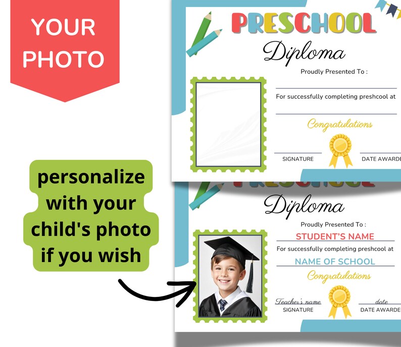 Preschool Diploma Template for Nursery School With Photo Congratulatory