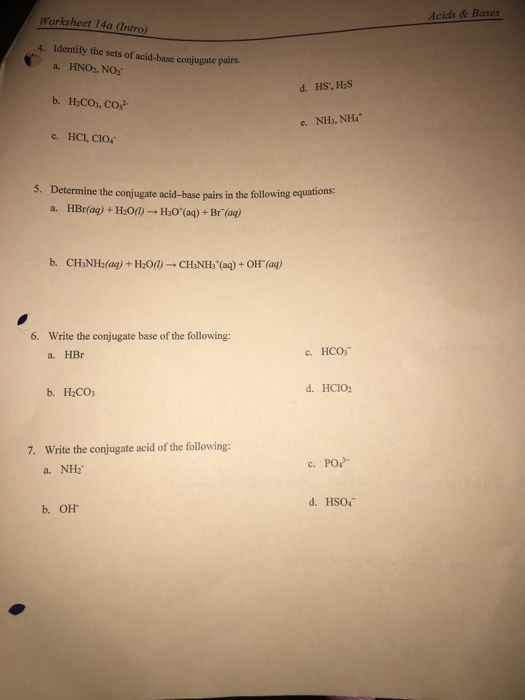 Conjugate Acid Base Pairs Worksheet With Answers Free Worksheets