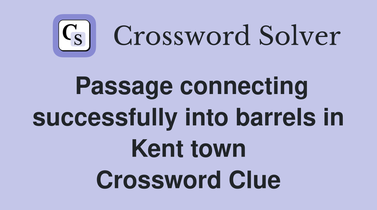 Passage connecting successfully into barrels in Kent town Crossword