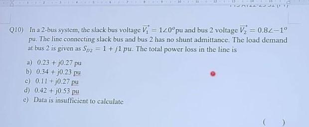 Solved 210) In a 2 bus system the slack bus voltage Chegg com