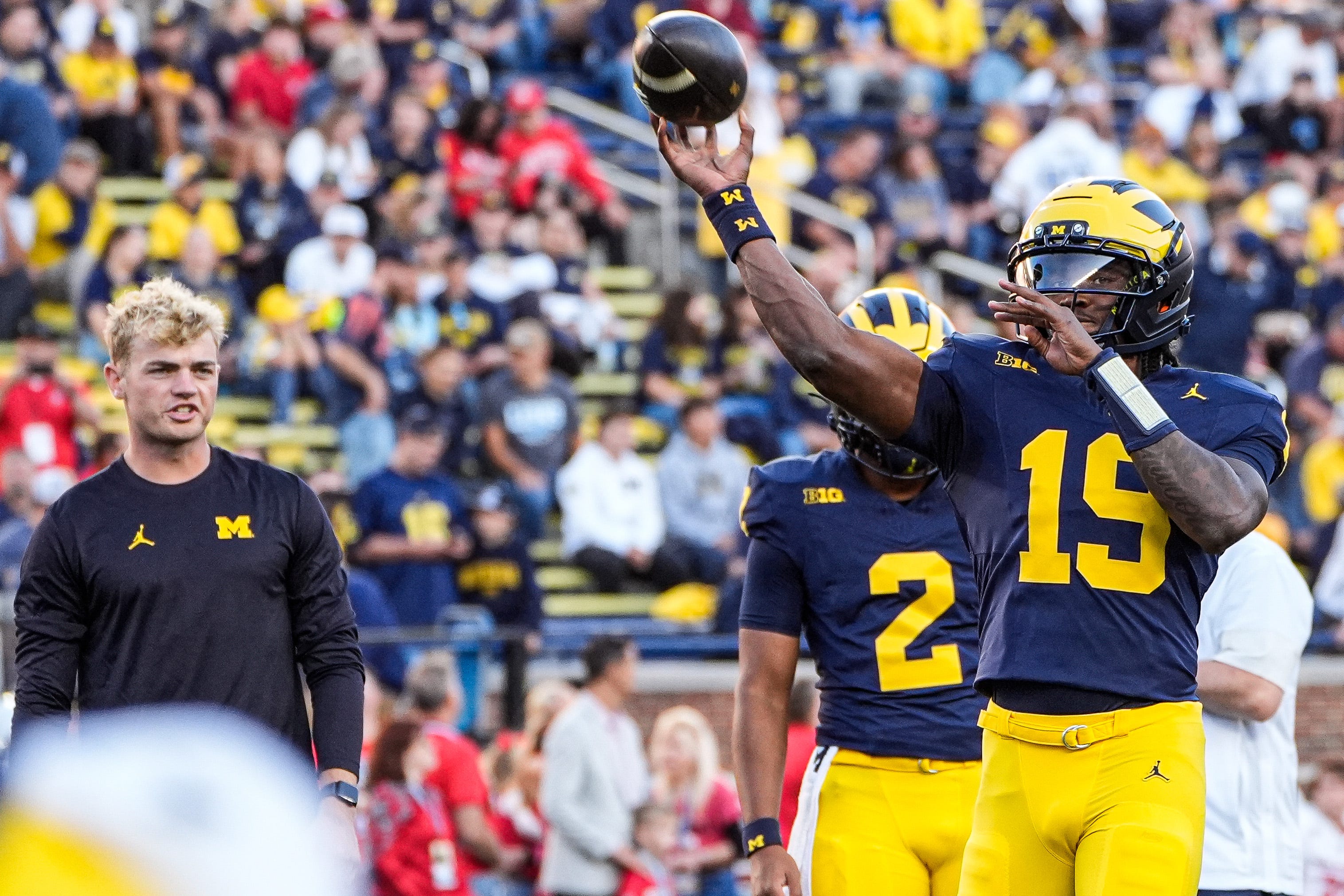 Bryce Underwood #39 s first TD pass: Michigan QB connects with Marlin Klein