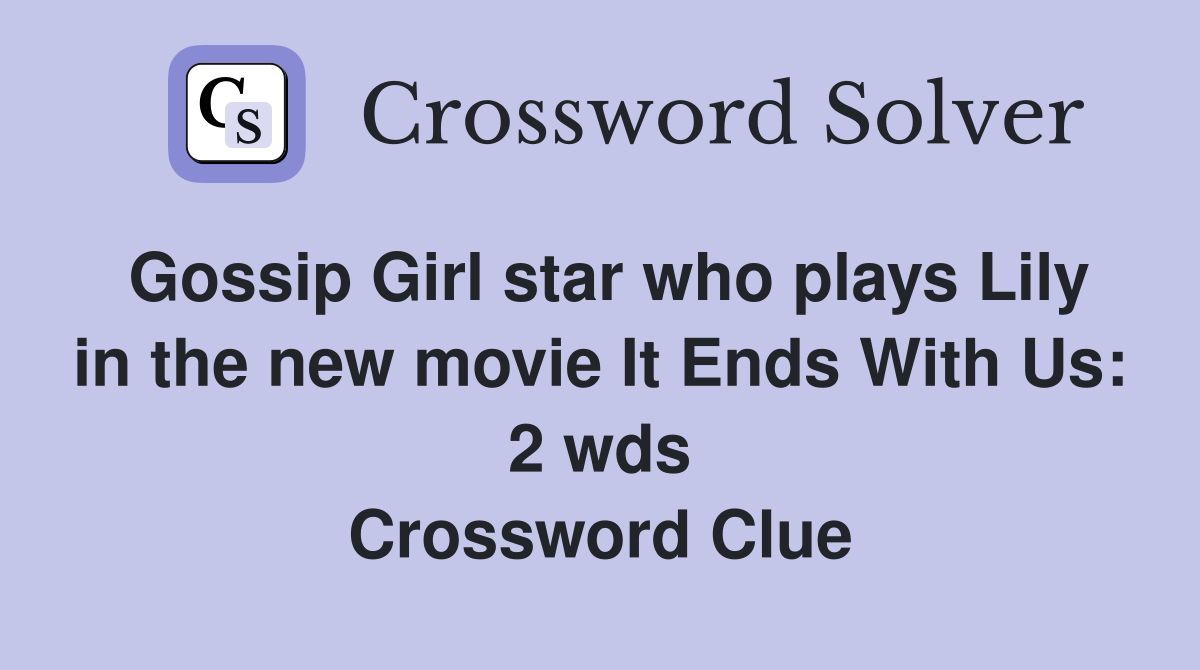 Gossip Girl star who plays Lily in the new movie It Ends With Us: 2 wds