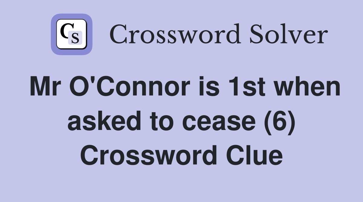 Mr O Connor is 1st when asked to cease (6) Crossword Clue Answers