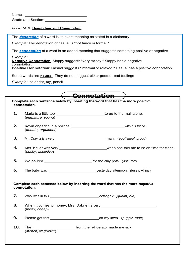Here are some of the images for Connotation Vs Denotation Worksheet that we found in our website database.