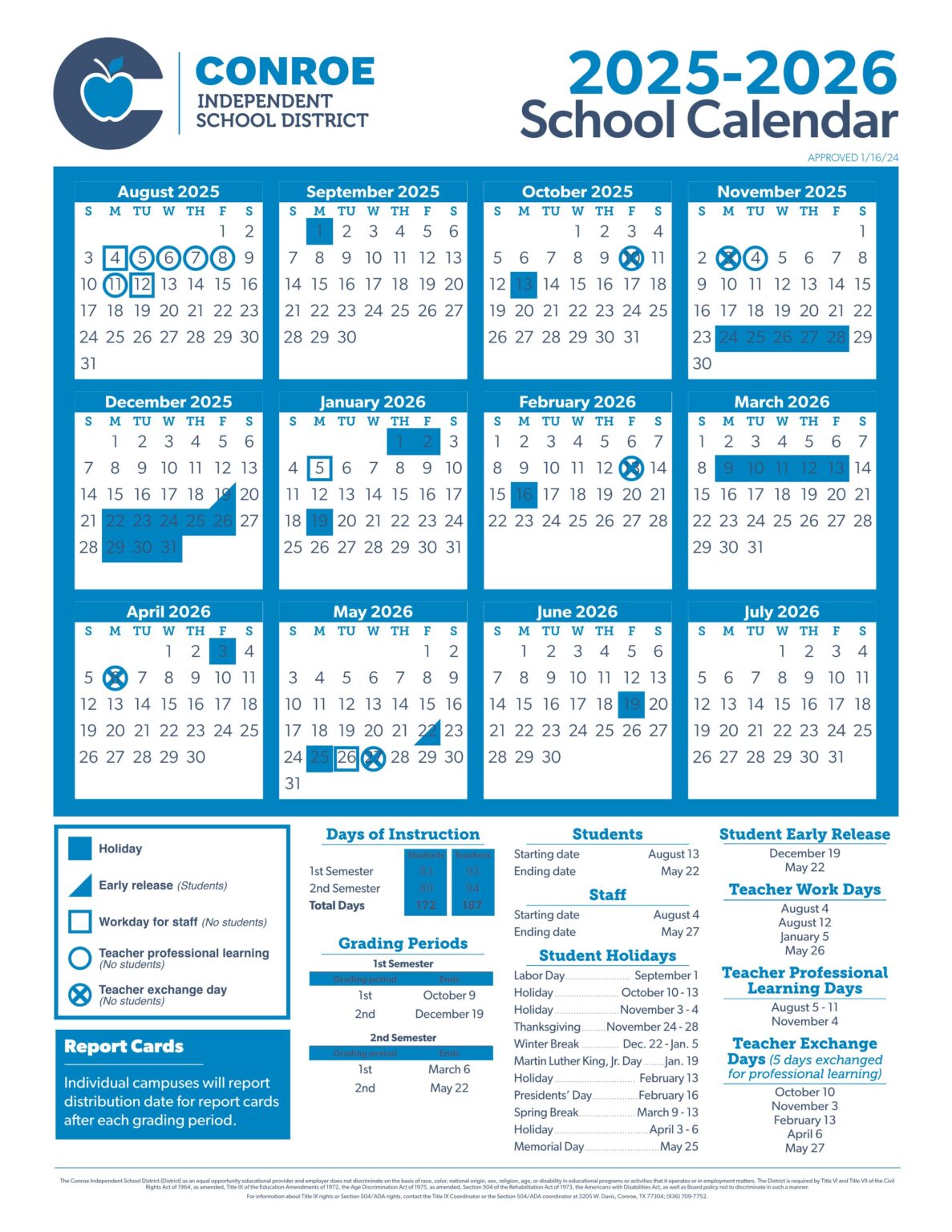 Conroe ISD School Calendar 25 26 ISD EduCounty