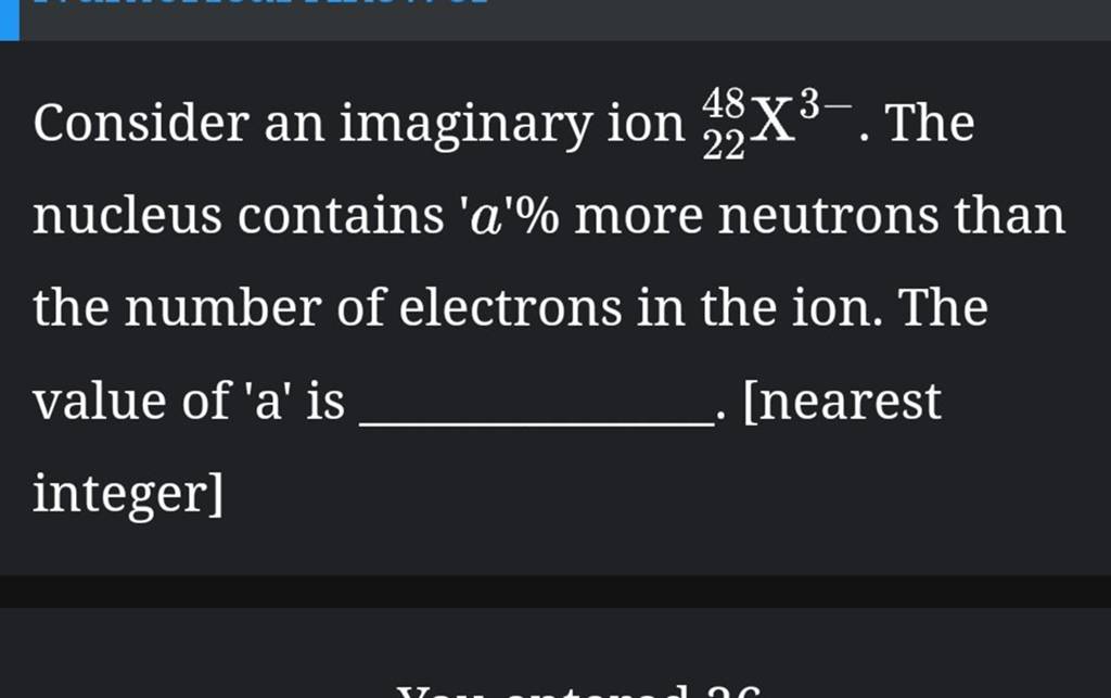 Consider an imaginary ion 2248 X3− The nucleus contains #39 a #39 #92 % more neu