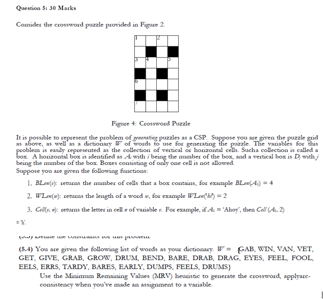 Solved Question 5: 30 Marks Consider the crossword puzzle Chegg com