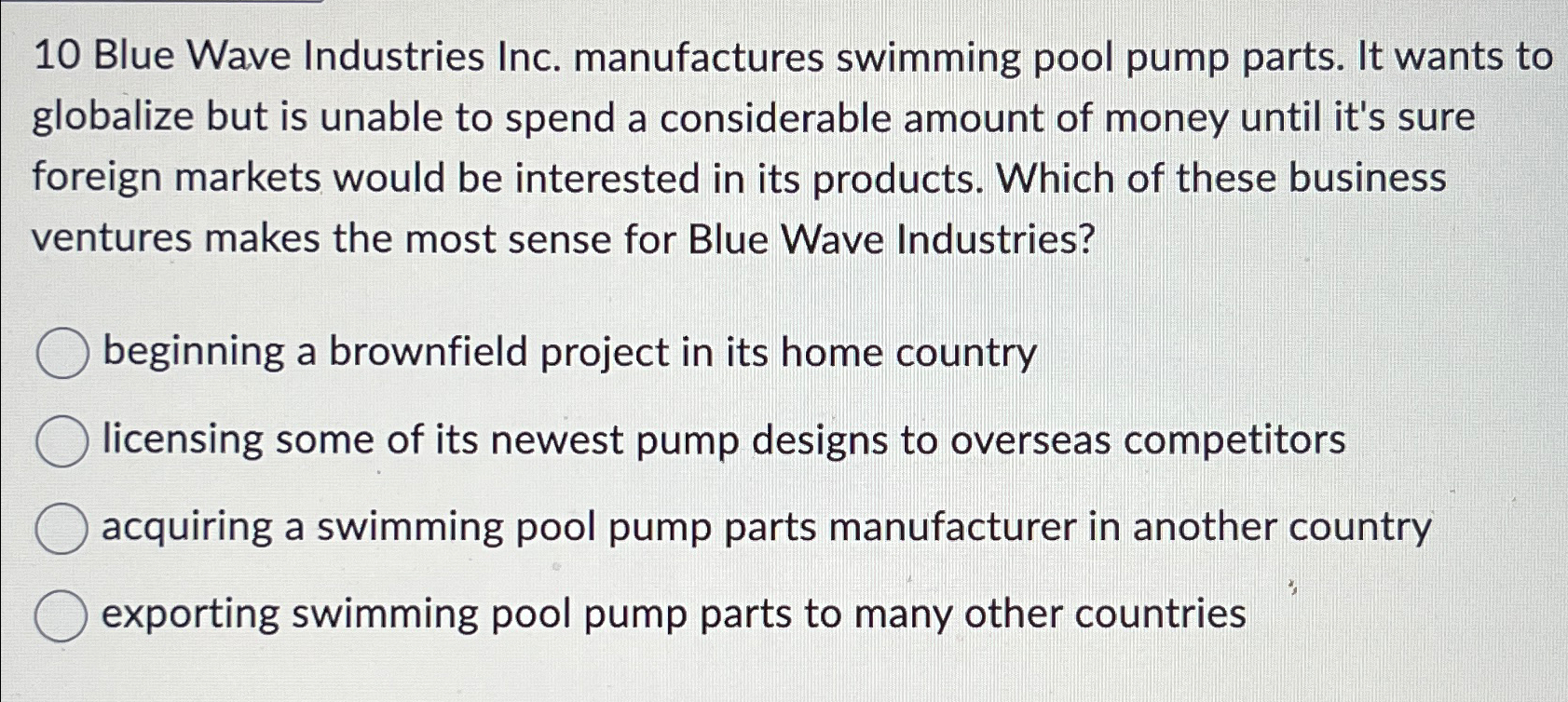 Solved 10 Blue Wave Industries Inc manufactures swimming Chegg com