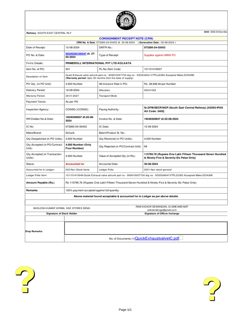 Consignment Receipt Note (CRN) : Signature Not Verified PDF Receipt