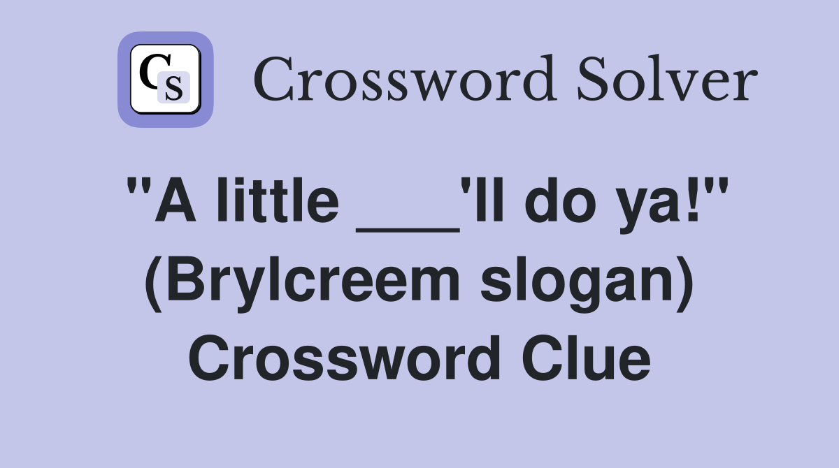 quot A little #39 ll do ya quot (Brylcreem slogan) Crossword Clue Answers
