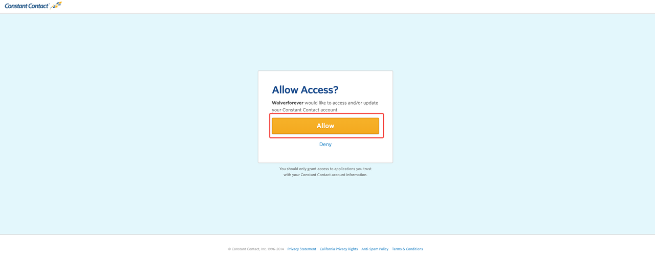 Integration Constant Contact and WaiverForever WaiverForever Help