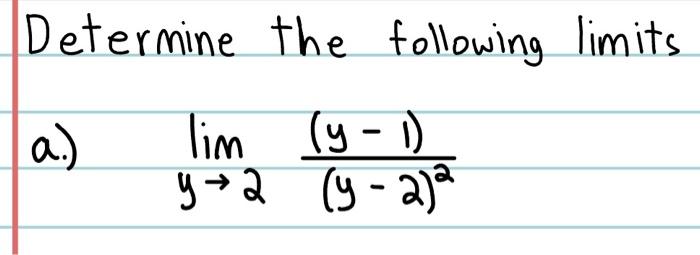Solved Determine the following limits lim y → 2 (y Chegg com