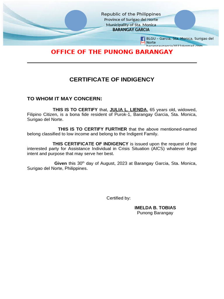 Certificate of Indigency 2 PDF Philippines Constitutional Law