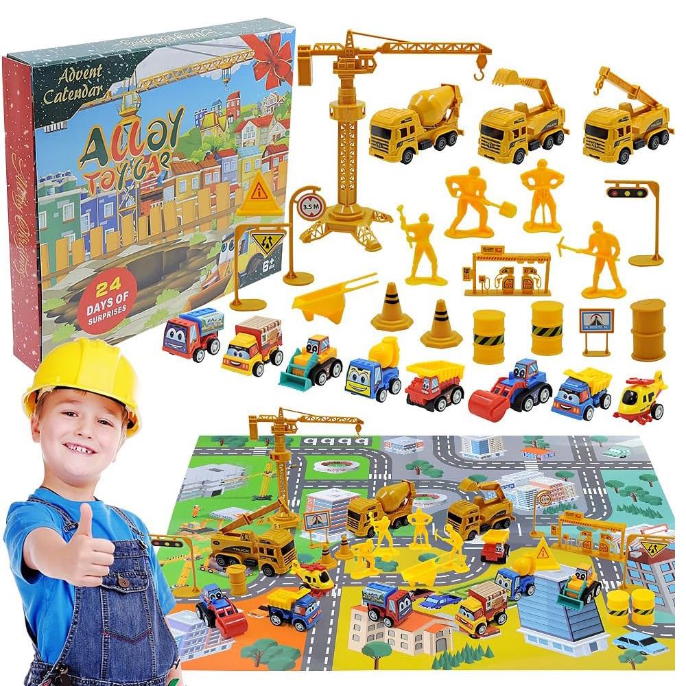 Advent Calendar Kids Boys Construction Vehicles Toy Set Christmas