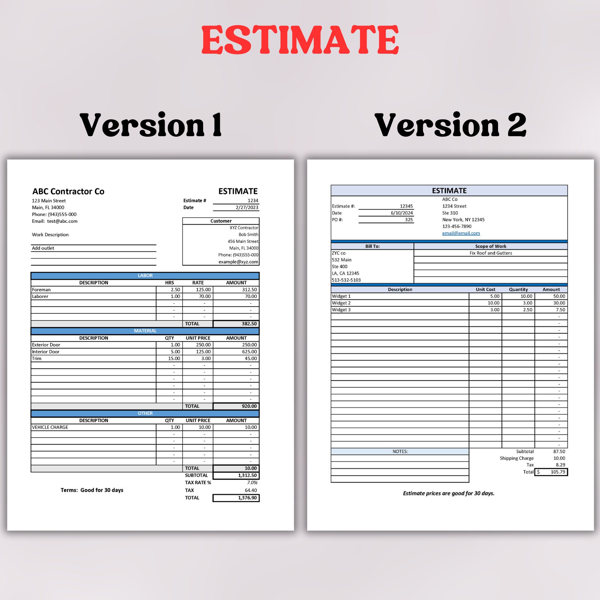 Construction Estimate Bid Template Etsy