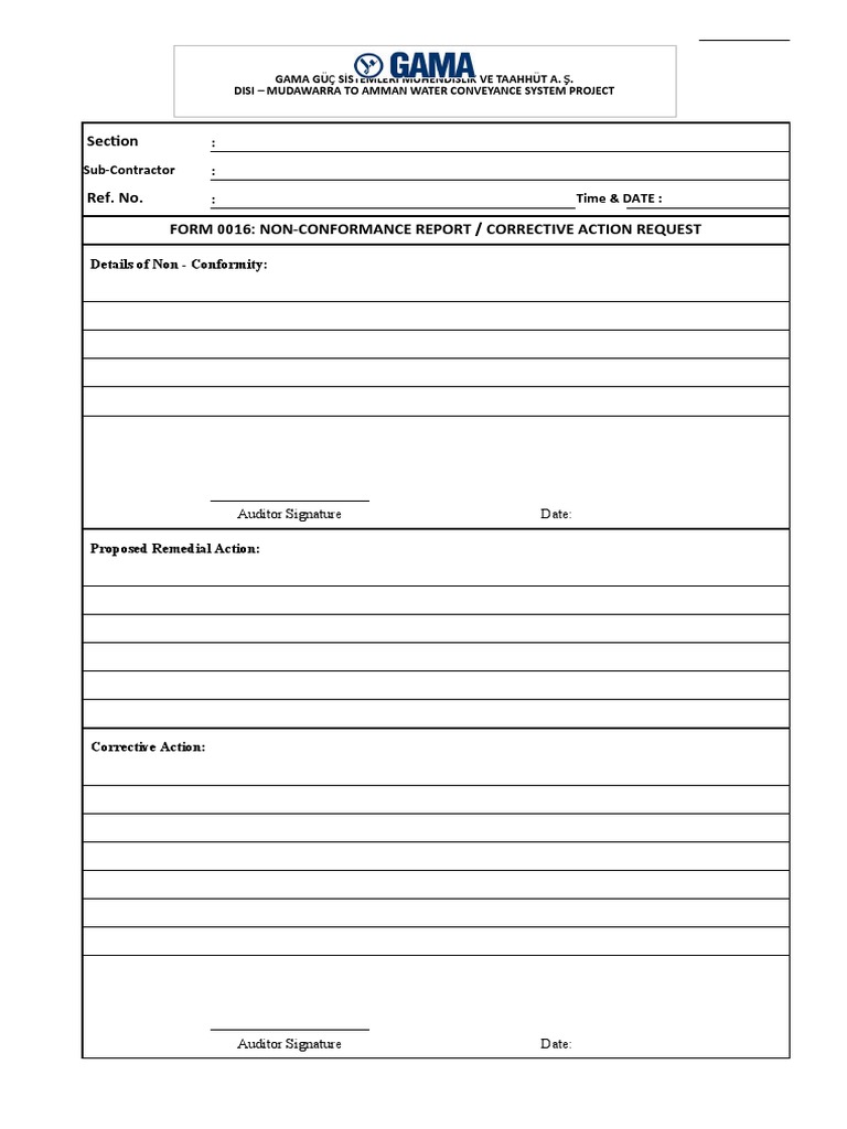 Non Conformance Report Form Template Atlanticcityaquarium com