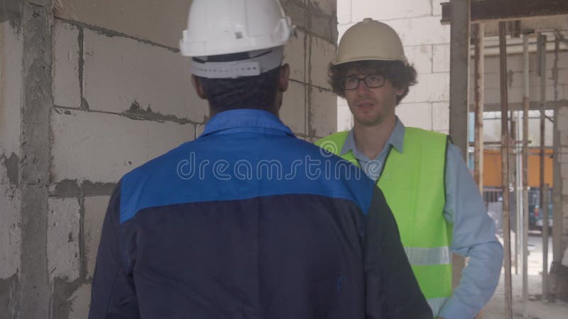 Architect and Builder Talking and Inspector Construction at
