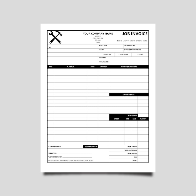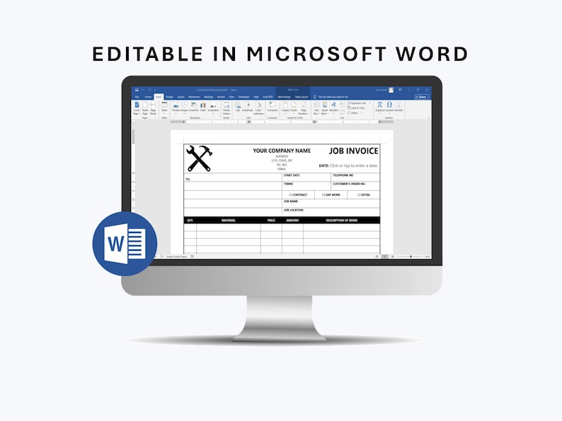 Editable Construction Job Invoice Template Microsoft Word Template Etsy