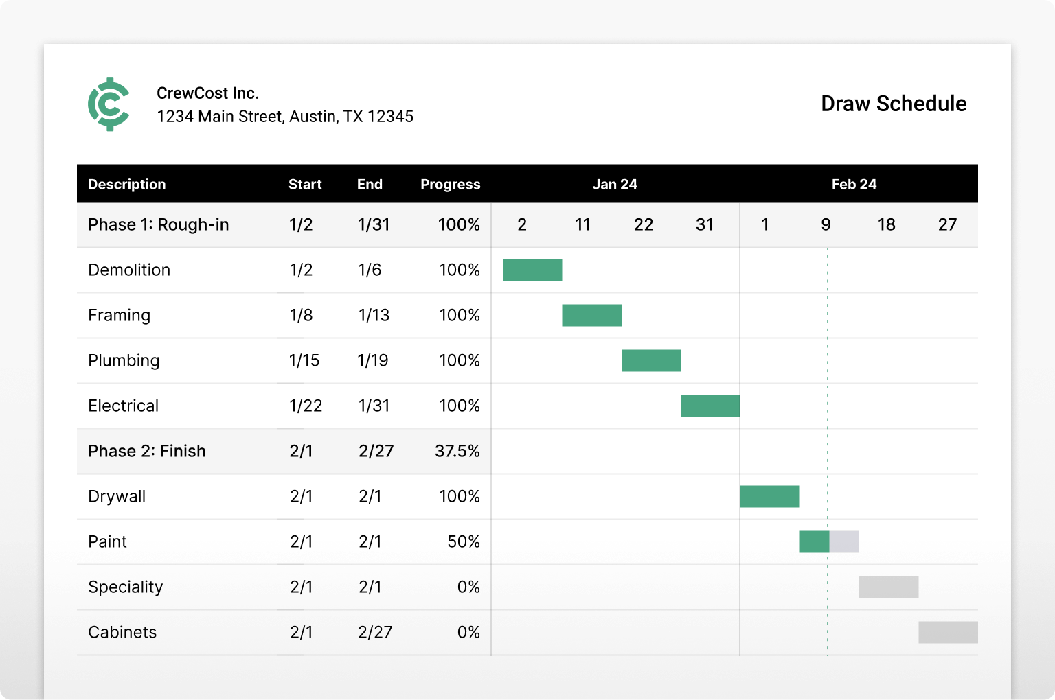 Construction Draw Schedule Template (Excel and Google Sheets) Highfile