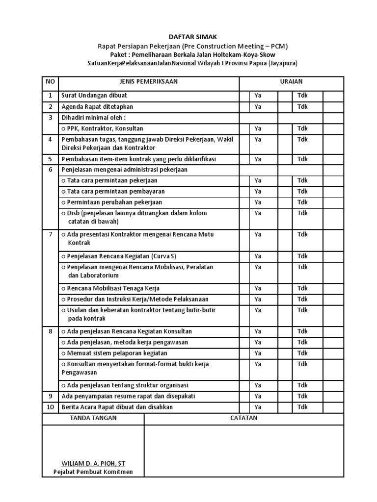 Pre Construction Meeting Checklist Template