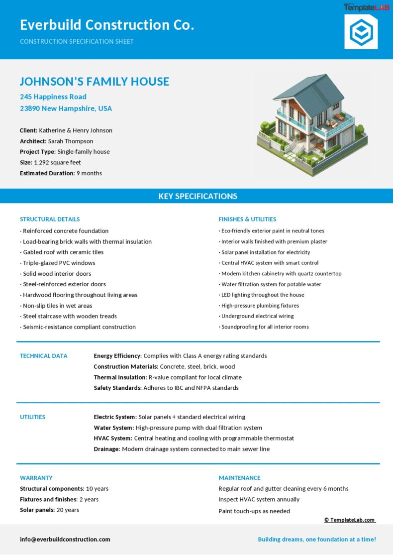 40 Useful Spec Sheet Templates (Construction Product Design )