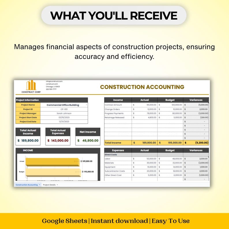 Construction Accounting Excel Template: Small Business Cost Tracker