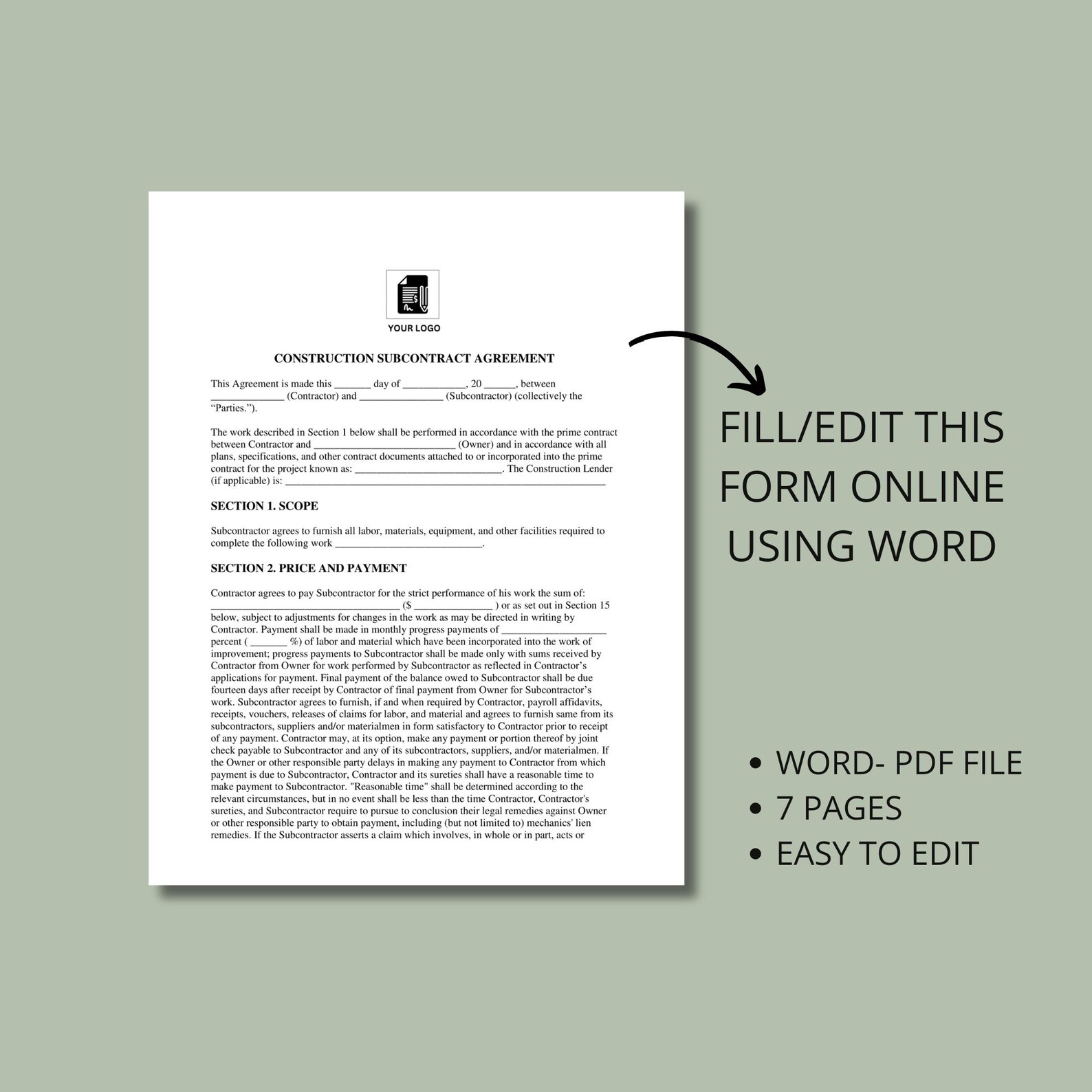 Free Construction Subcontractor Agreement Form Template to Edit Online