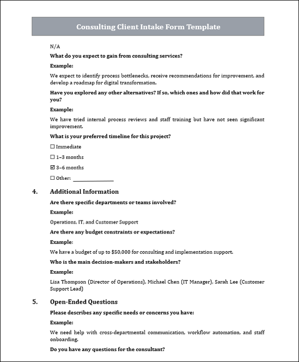 Consulting Client Intake Form Template