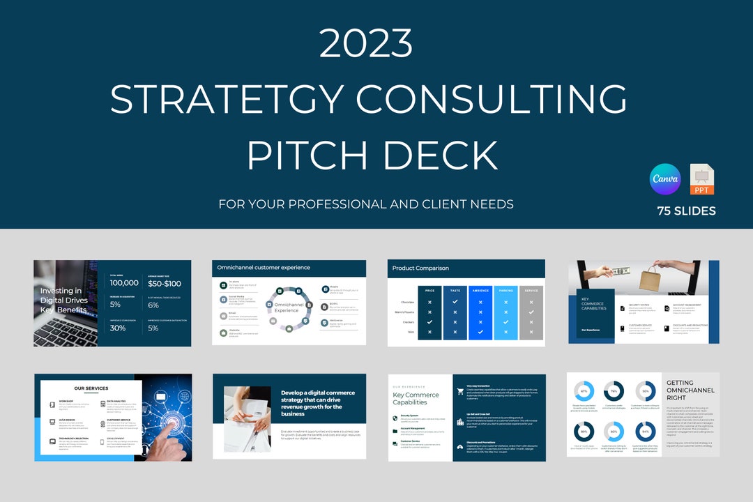 2023 Strategy Consulting and Pitch Deck Professional Template for Canva