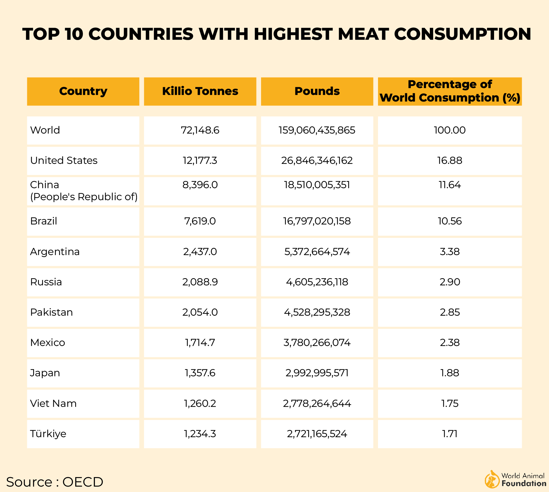The most consumed type of meat by country including fish seafood : r