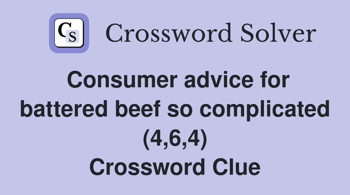 Consumer advice for battered beef so complicated (4 6 4) Crossword