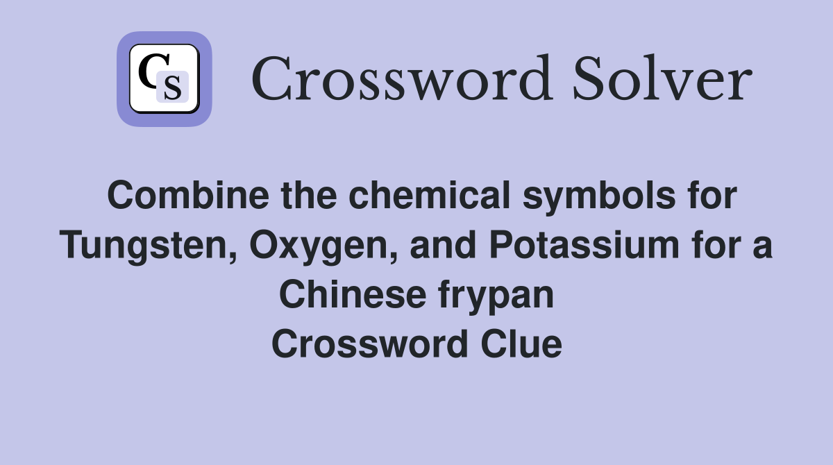 Combine the chemical symbols for Tungsten Oxygen and Potassium for a