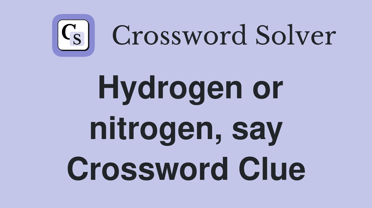 Hydrogen or nitrogen say Crossword Clue Answers Crossword Solver