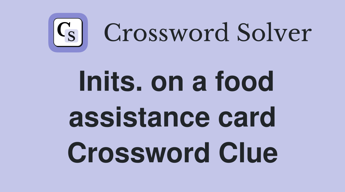 Inits on a food assistance card Crossword Clue Answers Crossword