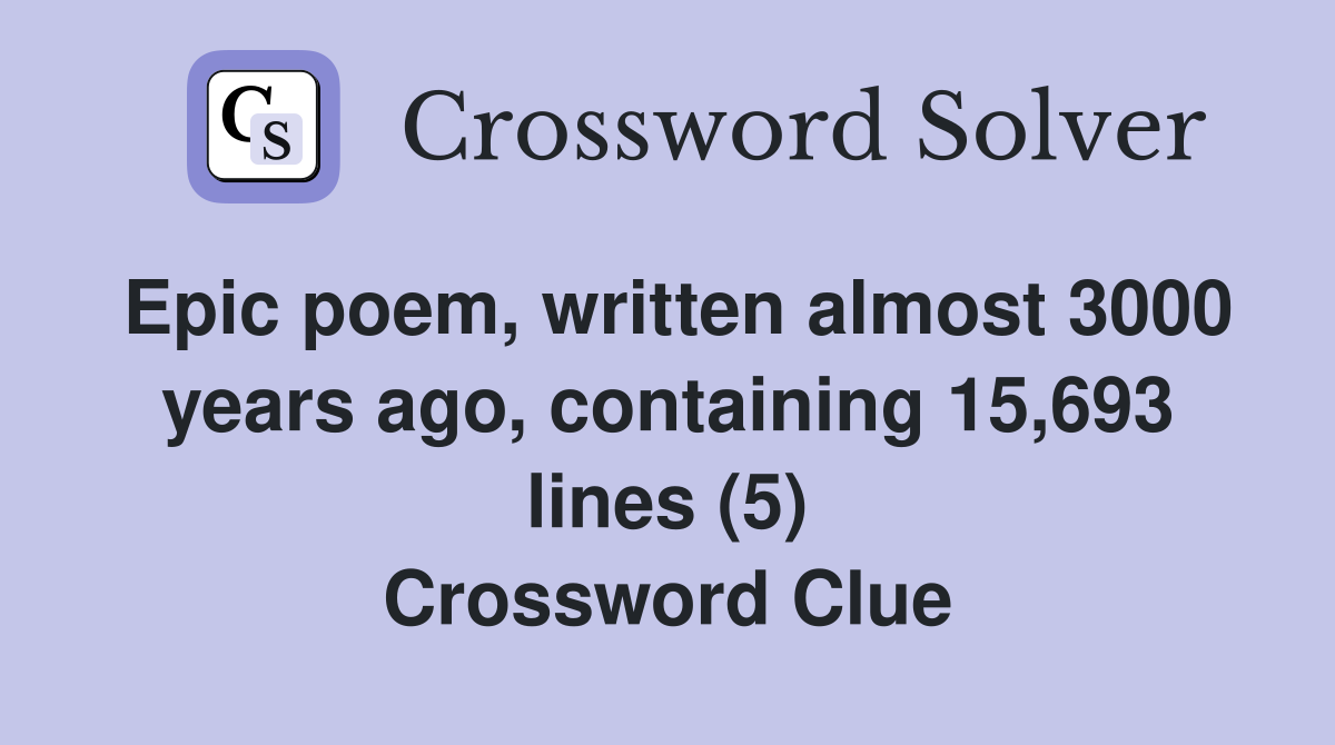 Epic poem written almost 3000 years ago containing 15 693 lines (5