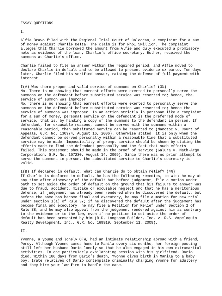 Remedial Law 2013 Question and Answers PDF Contempt Of Court Felony