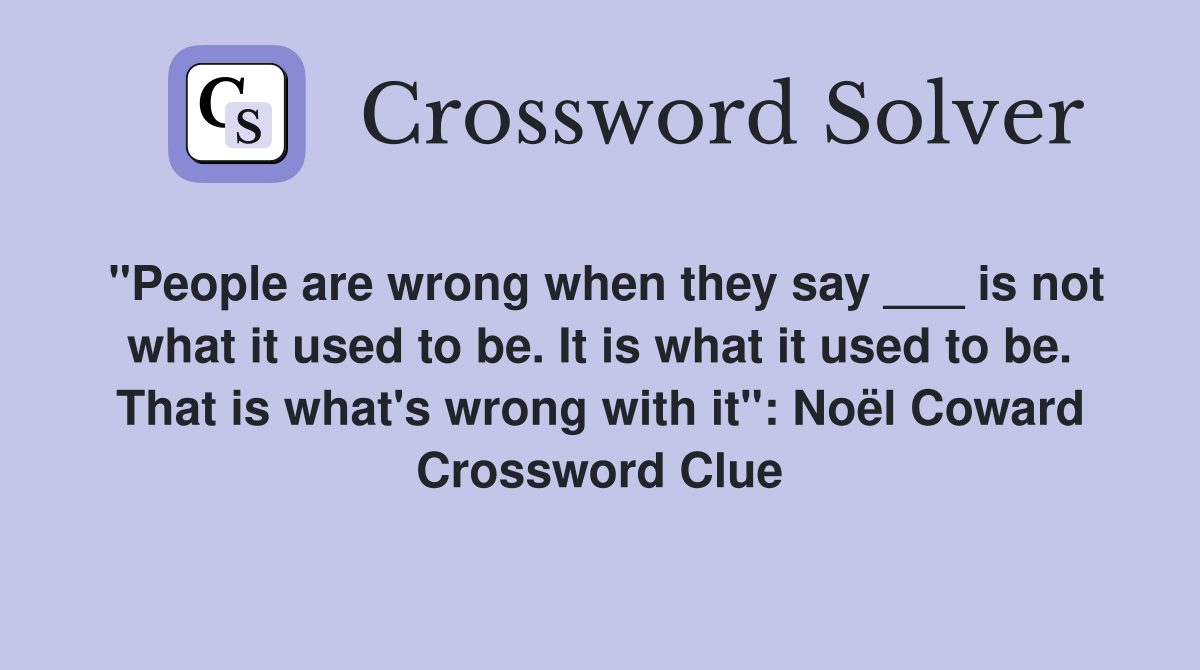 quot People are wrong when they say is not what it used to be It is
