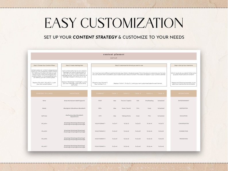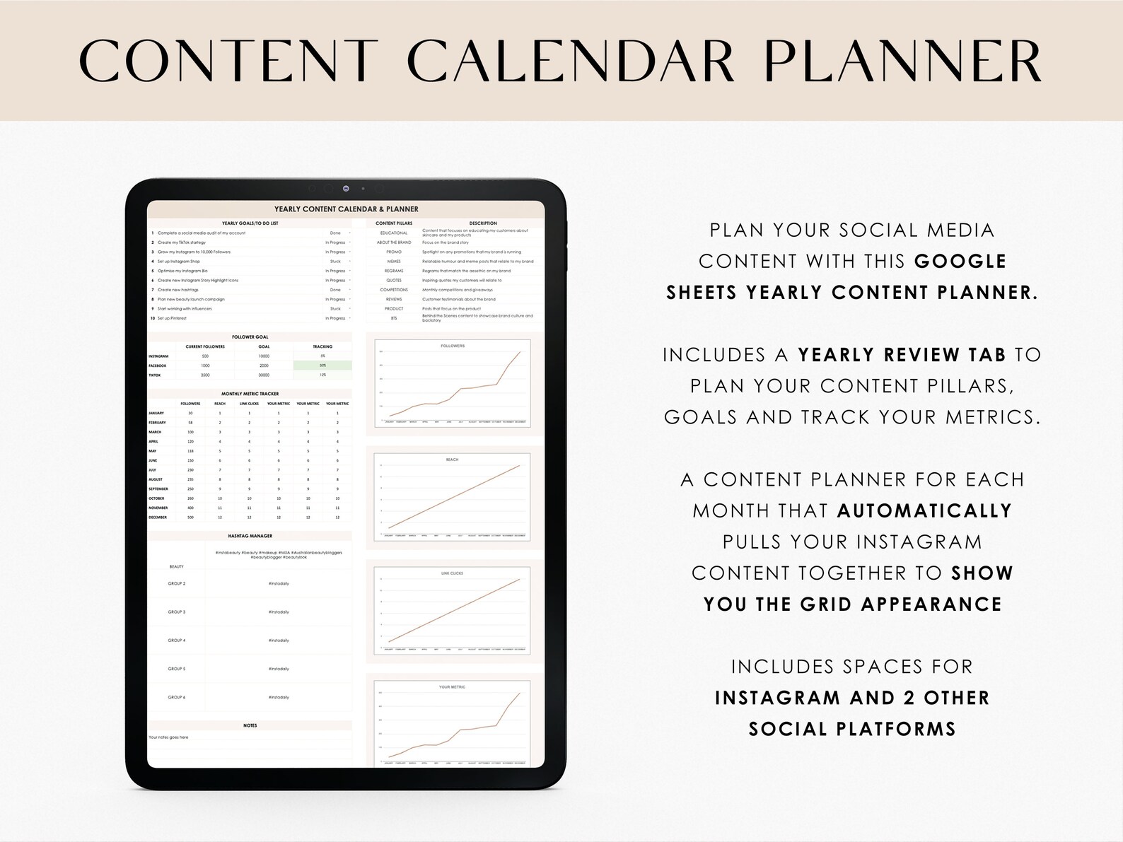 Content Calendar Planner Spreadsheet Monthly Digital Etsy