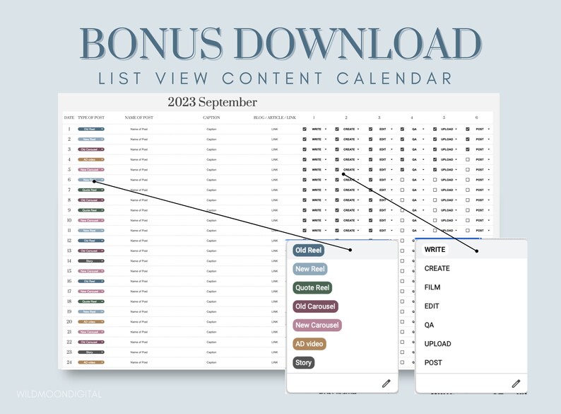 Content Calendar Planner Spreadsheet Monthly Digital Marketing