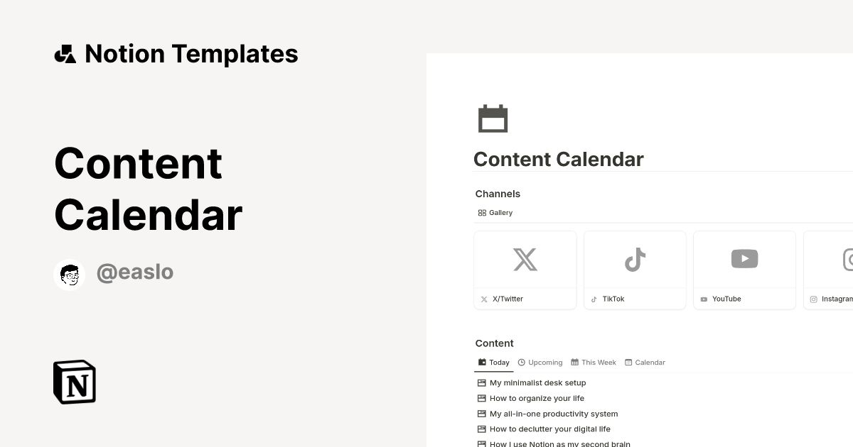 Notion Content Calendar Template: Social Media SEO and Email (2023