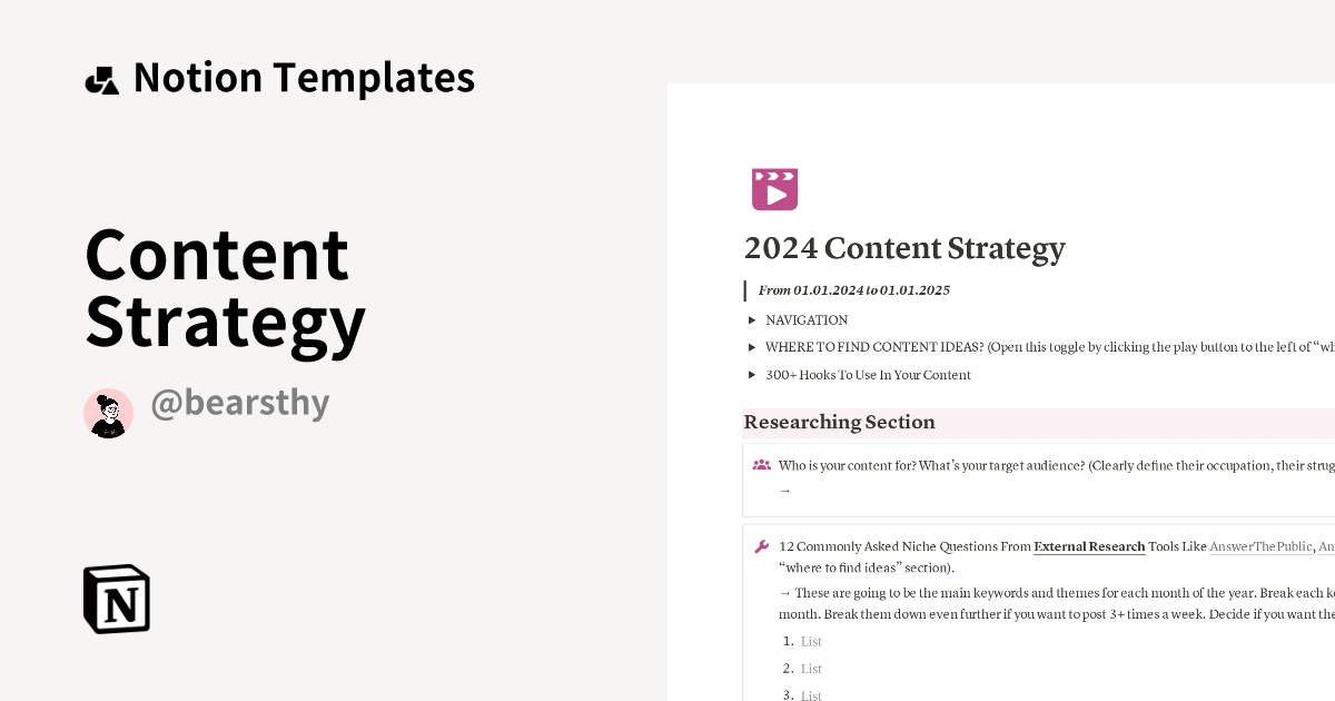 Content Strategy Template by NiaTheCreator Notion Marketplace