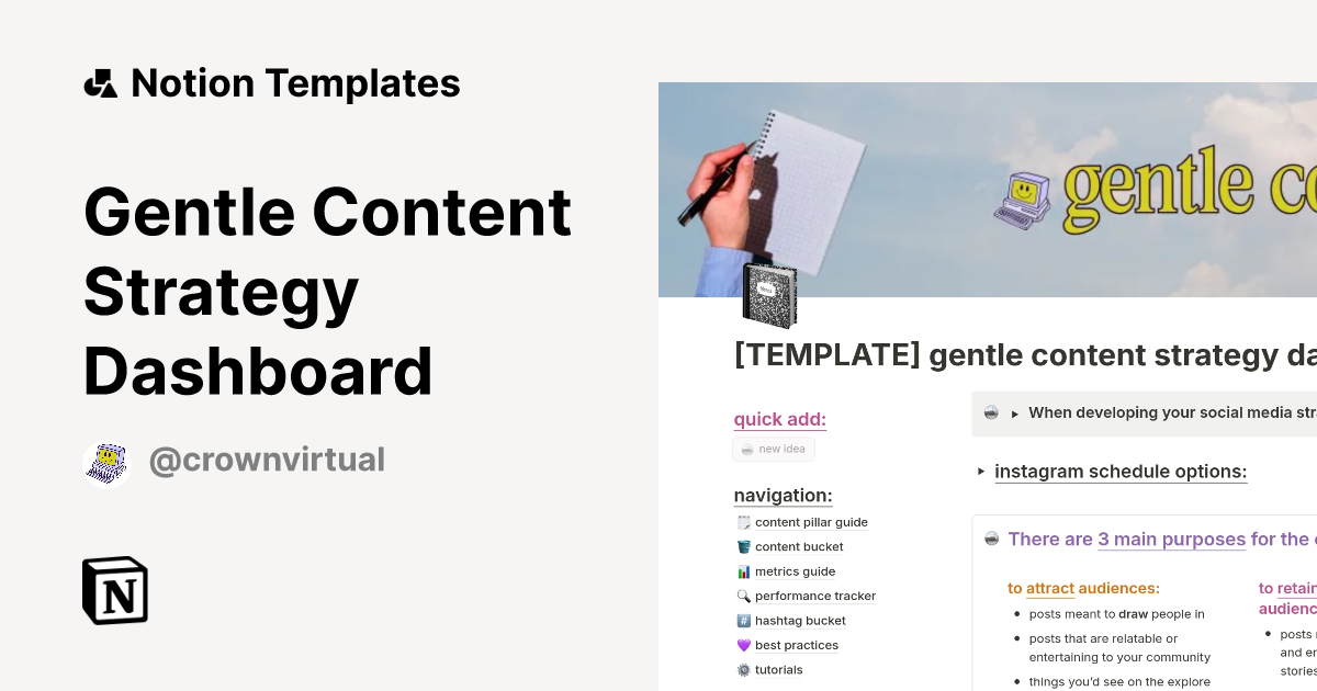 Gentle Content Strategy Notion Dashboard Template Crown Creatives