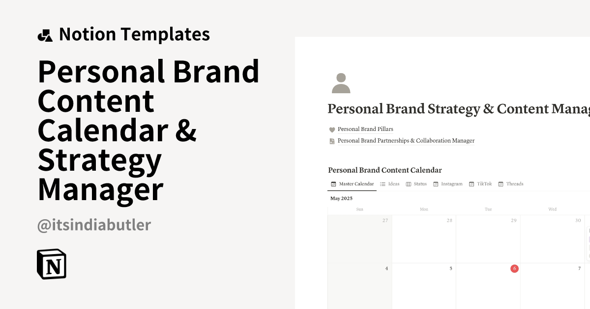 Personal Brand Content Calendar Strategy Manager Template Notion