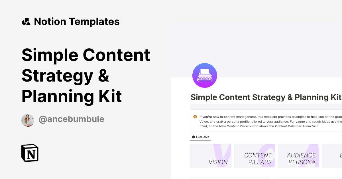 Simple Content Strategy Planning Kit Template Notion Marketplace