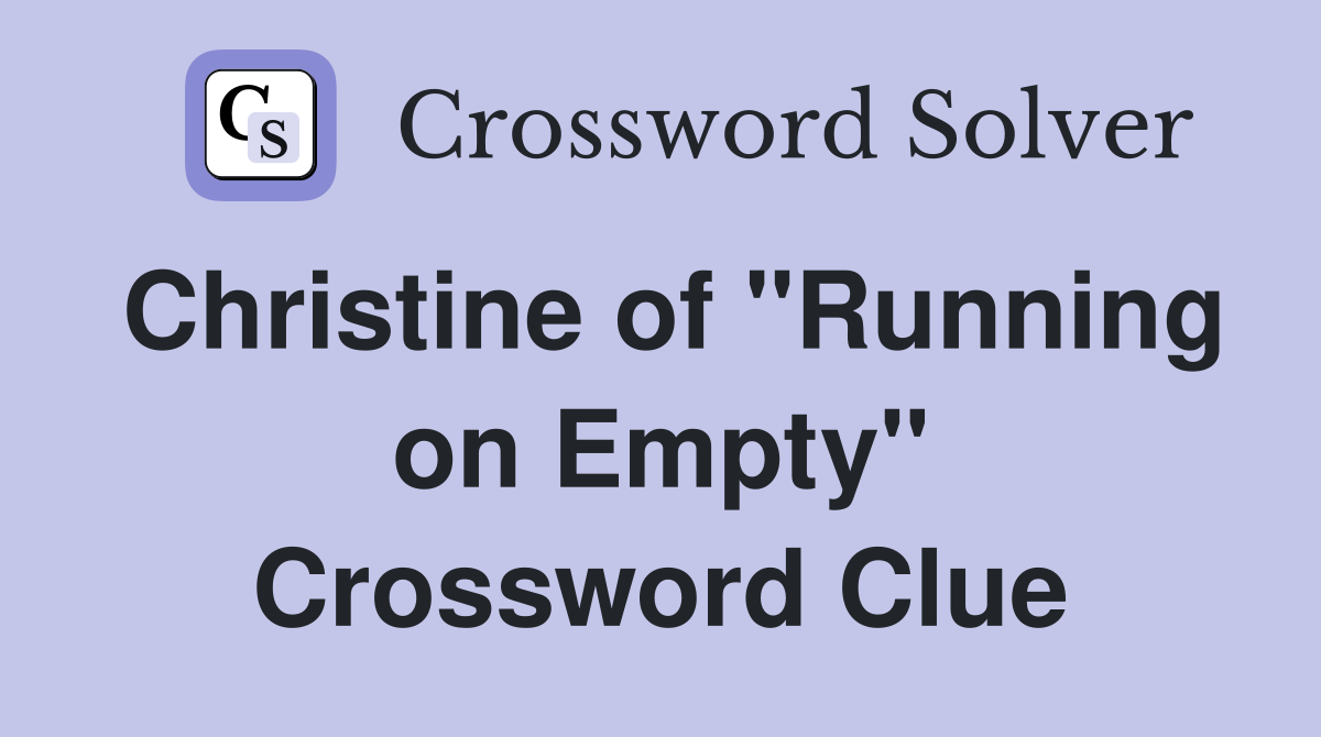 Christine of quot Running on Empty quot Crossword Clue Answers Crossword Solver
